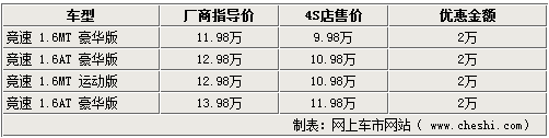 近日,青年汽車旗下車型-蓮花競(jìng)速傳出很快將完全國(guó)產(chǎn)化的消息,在前段時(shí)間廠家調(diào)價(jià)降10000元后,市場(chǎng)價(jià)格再次出現(xiàn)波動(dòng)。據(jù)網(wǎng)上車市網(wǎng)站了解,青年蓮花競(jìng)速車型在北京市場(chǎng)也出現(xiàn)了更多的優(yōu)惠政策,現(xiàn)在購(gòu)車將在廠家調(diào)價(jià)的基礎(chǔ)上再優(yōu)惠1萬(wàn),最低價(jià)格已經(jīng)下探至9.68萬(wàn)。具體詳情如下: