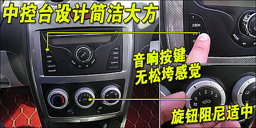 天津一汽威姿V1的中控臺(tái)面板采用了硬塑材質(zhì)。中控臺(tái)的各按鍵設(shè)計(jì)大小、阻力適中,旋鈕的阻尼一般,在使用中各項(xiàng)調(diào)節(jié)功比較準(zhǔn)確。