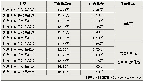 據(jù)4S店銷(xiāo)售人員介紹:目前朗逸全系無(wú)現(xiàn)車(chē),全部需要預(yù)訂,訂車(chē)最少等待2個(gè)月,最長(zhǎng)需等3個(gè)月。目前朗逸1.6排量車(chē)型無(wú)任何優(yōu)惠,也不附贈(zèng)裝飾;但購(gòu)買(mǎi)2.0升排量車(chē)型有1000元的小幅降價(jià),并且還附贈(zèng)價(jià)值8400元的“大禮包”!按蠖Y包”包括導(dǎo)航、6碟CD、雷鵬車(chē)膜、地膠、腳墊、擋泥板、牌照架、迎賓踏板等,可以說(shuō)您購(gòu)買(mǎi)2.0升排量車(chē)型可以免去做更多的裝飾,綜上推薦購(gòu)買(mǎi)2.0升排量車(chē)型。