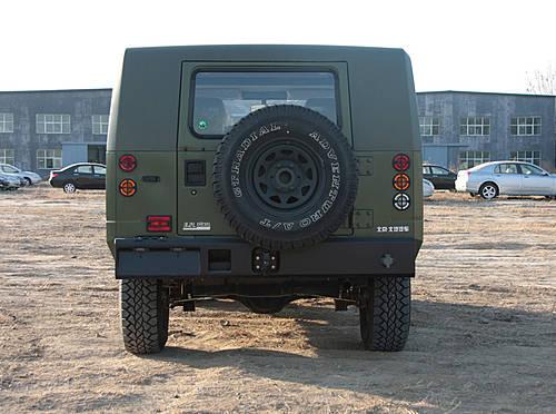 其外形設(shè)計(jì)的目標(biāo)原則是強(qiáng)調(diào)在繼承中發(fā)展的思路,實(shí)現(xiàn)突破創(chuàng)新和現(xiàn)代感的全新造型;強(qiáng)調(diào)具有中國文化底蘊(yùn),不與國內(nèi)、國外車型雷同;在保持傳統(tǒng)特色的同時(shí),來強(qiáng)化現(xiàn)代感。其以粗獷、簡潔、威武的造型,展現(xiàn)了我軍威武之師、現(xiàn)代軍隊(duì)的風(fēng)貌和現(xiàn)代“硬派”越野車的風(fēng)格。外形個性鮮明,車身外觀緊湊而流暢,前臉造型模仿狼眼外眼角上揚(yáng)、怒視前方的表情,與前保險(xiǎn)杠融為一體的狼牙造型,將野性、威猛的氣勢演繹得淋漓盡致。篷頂后部稍向下沿伸,恰似豹子起跑前的后坐姿勢,突出了整車的動感與強(qiáng)悍。