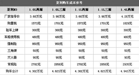 一、購車成本,夏利N31.1排量的兩廂和三廂車型在價(jià)格方面優(yōu)勢(shì)明顯,不足4萬元的價(jià)位,對(duì)于資金不充足的用戶是個(gè)非常不錯(cuò)的選擇。同時(shí)1.4排量的車型,也是在同排量的車型中,價(jià)位相對(duì)較低的一款。