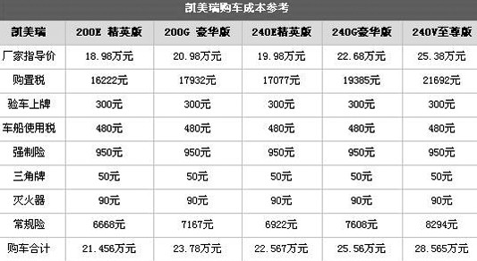 一、購車成本,凱美瑞2.4排量的240E精英版在價(jià)格方面優(yōu)勢比較明顯。相比于2.0排量的車型,性價(jià)比更加突出。裸車價(jià)格僅為19.98萬元。