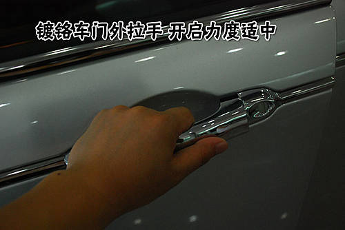 名爵MG 7L的車門外拉手采用鍍鉻材料處理,表面非常光滑,握感比較舒適,開啟的力度適中,不需要太大的力氣即可開啟車門。