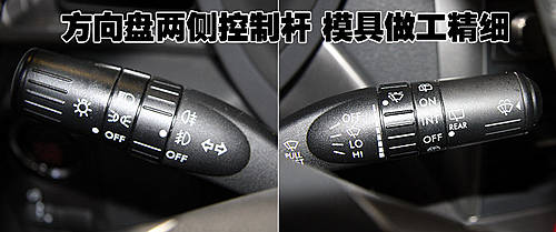 方向盤左右兩側(cè)控制桿為塑料材質(zhì)。無(wú)論是看上去還是觸摸時(shí)都能感覺(jué)到這部分材料的工藝質(zhì)量很好。