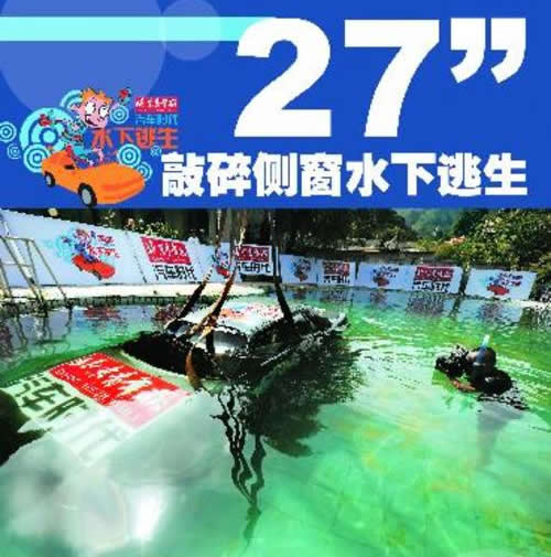 由《北京青年報》舉辦的"車輛落水逃生試驗"上周在懷柔雁棲景區(qū)的巴克公社進行。試驗分三段進行,在車輛落水后,分別驗證了推開車門逃生、砸破側(cè)窗逃生和砸碎前風(fēng)擋逃生。試驗結(jié)果顯示,車輛落水后保持鎮(zhèn)定、積極措施自救,是成功逃生的保證。推開車門逃生是最直接、快速的自救方法。