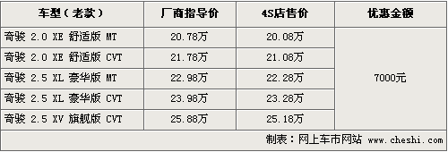 據(jù)4S店銷售人員介紹,目前奇駿2.5排量車型各款供貨都比較充足,2.0排量仍需要預(yù)訂,F(xiàn)車主要有黑色、銀色、灰色等。消費(fèi)者購車的話可以優(yōu)惠現(xiàn)金7000元左右,其中2.0排量優(yōu)惠后售價(jià)僅為20萬左右,性價(jià)比優(yōu)勢比較明顯。如果消費(fèi)者到店看車選購還將有部分讓利幅度。