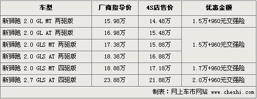 據(jù)4S店銷售人員介紹,目前購(gòu)買(mǎi)獅跑可以贈(zèng)送960元的交強(qiáng)險(xiǎn),同時(shí)有1.5萬(wàn)-2萬(wàn)元不等的現(xiàn)金優(yōu)惠。兩驅(qū)標(biāo)準(zhǔn)版優(yōu)惠后售價(jià)僅為14.48萬(wàn)元。目前經(jīng)銷商處有黑色、銀色等現(xiàn)車(chē)供應(yīng),藍(lán)色等款需要預(yù)定,訂金為2千元,月內(nèi)便可以順利提車(chē)。