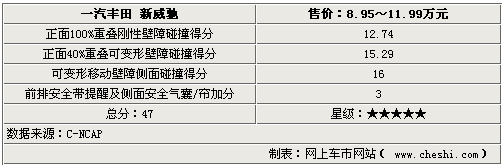 該車1.6L級(jí)別兼顧強(qiáng)動(dòng)力與低油耗的雙VVT-i發(fā)動(dòng)機(jī),最大功率87千瓦,最大扭矩150牛•米,綜合工況下的百公里油耗為6.7至7.1升,還配有GOA車身、帶EBD(電子制動(dòng)力分配系統(tǒng))的ABS(防抱死制動(dòng)系統(tǒng))等完備的安全性配置。