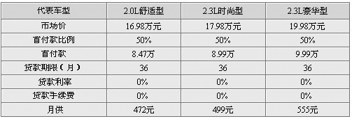 貸款詳解:蒙迪歐在歐洲是一款很受歡迎的車型,然而國產(chǎn)的蒙迪歐-致勝(報價 參數(shù) 圖片 論壇)卻并沒達(dá)到廠家的市場預(yù)期。新車貸款首付50%?蛻粼谇3年內(nèi)免利息,每月只需償還極低的月供。3年內(nèi)銀行貸款所發(fā)生的利息由經(jīng)銷商和長安福特承擔(dān)。貼息費用由經(jīng)銷商與銀行結(jié)算。3年之后,客戶可以選擇一次性還清尾款,也可以選擇在未來的24個月內(nèi)分期還清尾款,方式為每月還本付息。