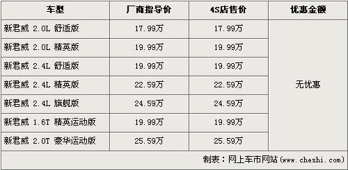 根據(jù)北京別克經(jīng)銷店銷售人員介紹,自別克新君威1.6T上市后,目前別克新君威全系共有7款車在售,售價區(qū)間為17.99萬元-25.59萬元。銷售人員還介紹,店內(nèi)已經(jīng)可以介紹新君威1.6T的預(yù)訂,訂金為1千元,月底首批現(xiàn)車到店。