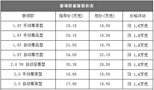 上海大眾PASSAT新領(lǐng)馭的外形大氣,在國內(nèi)公務(wù)車市場中銷量名列前茅,在很多國人眼中新領(lǐng)馭是公務(wù)車的首選車型。進入10月份之后,北京地區(qū)綜合經(jīng)銷商處新領(lǐng)馭的優(yōu)惠再次增加,目前新領(lǐng)馭全系車型的降幅均在1.4-1.9萬元區(qū)間,其中新領(lǐng)馭最低配車型的售價為15.58萬元,比9月份下降了6000元,性價比再次提升。以下是新領(lǐng)馭全系車型最新詳細報價表: