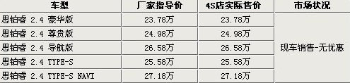 據東風本田4S店銷售人員介紹,目前思鉑睿全系車型均以到店,但車型顏色比較單一。思鉑睿全系提供了塔夫綢白、彩晶黑、鈦金銀、炫影藍、炫動紫五種外觀顏色,以及靜雅黃、靜逸黑兩種內飾顏色供消費者選擇。TYPE-S車型還推出炫速紅專用色。售后保養(yǎng)方面制定整車三年十萬公里的保修政策,提供3個月/5000公里的易損件保修服務。