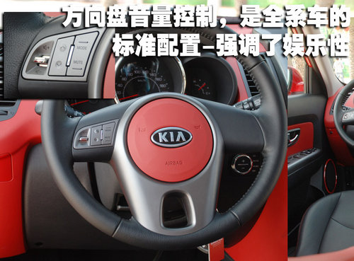 SOUL全系車型的方向盤上方都帶有一個音響控制按鈕,通過這個區(qū)域可以控制收音機、CD、MP3以及各個音樂模式之間的切換。強調(diào)娛樂性絕對是SOUL設(shè)計中最大的一個亮點。不過方向盤本身的造型還是比較普通,和剛剛上市的起亞福瑞迪很是相像。