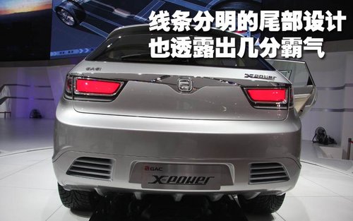 從尾部看上去,廣汽X-power概念SUV的線條非常分明,但由于尾燈的配合,顯得非常霸氣。這款SUV的尾燈采用紅色的設(shè)計(jì),四周配備了鍍鉻裝飾條,而且尾部還設(shè)計(jì)了擾流唇和造型獨(dú)特的排氣口。