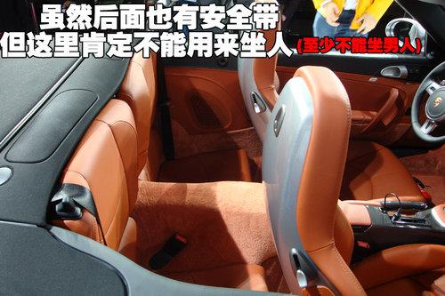 2010款保時捷911 Turbo敞篷版前排座椅為一體式運動型座椅,支撐有力且皮質(zhì)手感舒適。除座椅下方的電動調(diào)節(jié)按鈕外,在椅背側(cè)面還設(shè)計了手動扳手,從而方面后排乘客上下車。由于雙后座受到流線車體縮減的局促空間,并不適合體型略壯碩的成人長途乘坐。