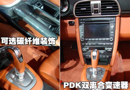2010款保時捷911 Turbo敞篷版三輻方向盤兩側(cè)則依照人體工學設(shè)計,分別加入音響通訊的控制鍵與滾輪,外側(cè)則是鋁合金的PDK換檔滑動開關(guān),這項全新的方向盤換檔設(shè)計,在人體工學的表現(xiàn)相當優(yōu)異,利用食指或中指就能完成升檔與降檔的檔位變換動作。