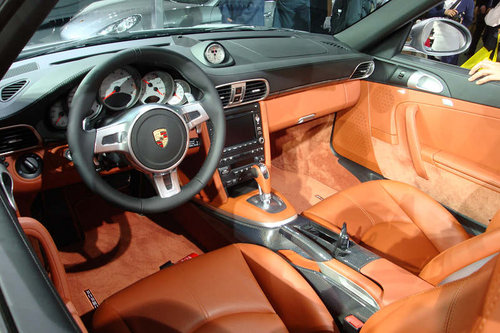 亞洲首發(fā)的保時捷911 Turbo Cabriolet成為展臺上最耀眼的明星。這款車型繼承了傳奇跑車系列所具備的非凡性能和精巧設(shè)計。這款第七代911 Turbo的核心亮點是其排量為3.8升、最大輸出功率達(dá)500 bhp的全新動力單元。在保時捷911 Turbo 35年的輝煌歷史當(dāng)中,這也是第一款全新搭載了直接燃油噴射以及帶有可變幾何渦輪保時捷專用渦輪增壓器的發(fā)動機。另外,全新六缸雙渦輪增壓水平對置發(fā)動機也是第一次與七速保時捷雙離合器變速箱(PDK)配合使用。