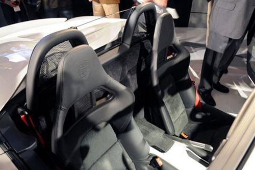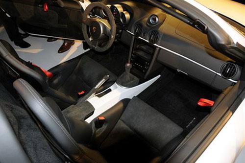 與潮流相悖,博克斯特Spyder仍堅(jiān)持使用軟頂敞篷設(shè)計(jì)。為彌補(bǔ)少了車頂而降低的車身強(qiáng)度,博克斯特Spyder在A柱等部位進(jìn)行了加強(qiáng)設(shè)計(jì)。去除了空的調(diào)系統(tǒng)與立體聲系統(tǒng),取自911 GT3 RS的鋁制車門外殼與輕量級(jí)的內(nèi)部門板則使該車維持良好的身姿:僅1275千克的體重相對(duì)博克斯特S有約80kg的減輕。降低的車身重心,全新的運(yùn)動(dòng)型懸掛以及一個(gè)標(biāo)配的防滑差速器讓這款博克斯特Spyder擁有了可以支持其獨(dú)特外觀的出色的駕駛動(dòng)力性。