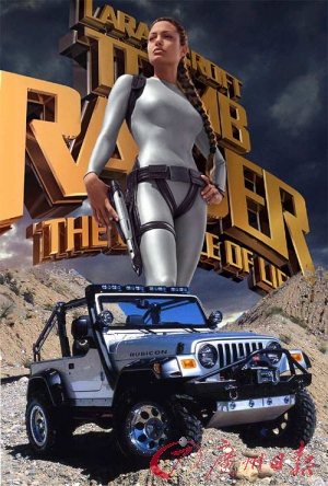 在《古墓麗影》里女主角勞拉的駕馭下,裝備精良的路虎穿山越嶺,造型酷到極點。也許是由于路虎在第一部電影里太過成功的緣故,汽車公司紛紛要求贊助勞拉。在《古墓麗影2》上映的時候,勞拉的強悍戰(zhàn)車換成了戴克萊斯勒公司的吉普牧馬人RUBICON,它在電影里的造型更加夸張。就連牧馬人出場的一幕也顯得很酷,勞拉直接從空中跳傘降落到牧馬人車中,并開著它穿越各種環(huán)境極為惡劣的地帶尋找目標(biāo),令大批吉普迷為之癡狂。