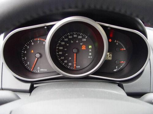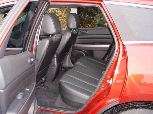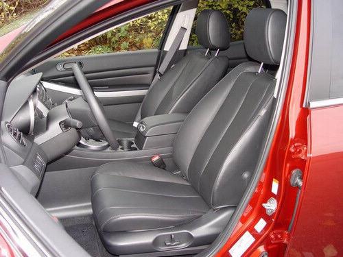 正如前述所提及的那樣,CX-7的內飾有了很大提升,采用了新的儀表板和座椅材質,扶手上的護墊更軟,儀表采用黑色或金屬質感裝飾,新的方向盤增加了包括藍牙電話在內的控制鍵,儀表板旁邊中控臺頂部的3.5英寸信息顯示屏是標配,可以顯示暖風和收音機信息。同時駕駛員座椅配備了新的三點記憶功能,前排乘客座椅增加了傾角電動可調功能。