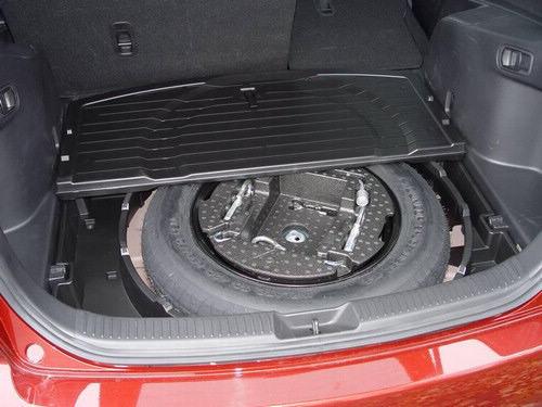 在排擋桿的后面是兩個杯架,后排中央扶手處也有兩個。在兩個前排座椅之間是一個帶有很大儲物箱的扶手,抬起扶手就可以發(fā)現(xiàn)里面有一個托盤,外接音頻接口和12伏電源插座。在手套箱和前排座椅背部的口袋內(nèi)內(nèi)還有更大的儲物空間。只需扳動行李箱內(nèi)的一個扳手就可以將后排座椅折疊放平,從而使儲物空間大大提高。在行李箱地板下備胎周圍還隱藏著一個儲物空間。車尾的掀背式尾門很輕,打開抬起或放下尾門都很容易,尾門開口很高,很寬,雖然儲物空間很寬敞,但仍比RAV4,CR-V和Equinox的小。