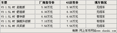 據東南汽車4S店銷售人員介紹,目前V3菱悅現(xiàn)車比較少,只有豪華版和旗艦升級版有現(xiàn)車銷售,風采版少量現(xiàn)車會在近期到店。而其他車型目前只能接受預訂,預計半個月左右能夠提到現(xiàn)車。目前購買V3菱悅沒有任何優(yōu)惠政策,而且并不贈送裝飾。