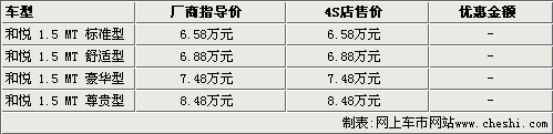 據(jù)江淮汽車4S店銷售人員介紹,江淮和悅?cè)龓I車目前只有展車,批量現(xiàn)車最快也需要一個月左右才能抵達(dá)。另外,由于現(xiàn)在沒有現(xiàn)車銷售,預(yù)訂江淮和悅?cè)龓I車并沒有任何優(yōu)惠政策,去年預(yù)訂優(yōu)惠1000元的政策也已經(jīng)取消。