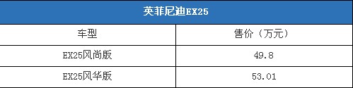 售49.8-53.01萬 英菲尼迪EX25中國(guó)上市