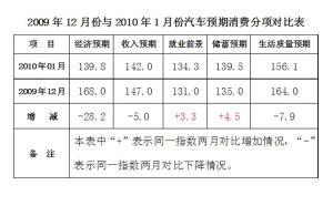 通過與2009年12月份的數(shù)據(jù)對比發(fā)現(xiàn)(見左圖),就業(yè)前景與儲蓄預(yù)期與上月相比略有上升,但幅度很小。第一個月居民對經(jīng)濟(jì)形勢的預(yù)期要比去年12月份略低28.2,說明居民對經(jīng)濟(jì)前景表明了一種較為謹(jǐn)慎的樂觀,尤其是進(jìn)入一月份以來,宏觀政策再次調(diào)控房價,這對于很多人的經(jīng)濟(jì)預(yù)期或多或少都有影響。但從總體來看,前后兩個月的平均變化為6.7,變化不是很大。