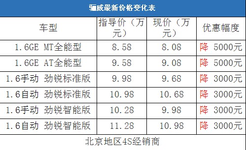 近日,編輯從北京地區(qū)東風(fēng)日產(chǎn)4S經(jīng)銷商處了解到,驪威的現(xiàn)車比較充足,每款車型都有少量現(xiàn)車在售。目前購車最高有5000元的現(xiàn)金優(yōu)惠,與去年的4S優(yōu)惠幅度相同,但現(xiàn)車緊張的狀況已經(jīng)解決。以下是驪威最新價格變化表: