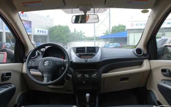 新奧拓的內飾里可以看到不少熟悉的元素,比如方向盤就跟雨燕一模一樣。儀表盤設計得很可愛,轉速表被單獨放置在中控臺左角,小表盤增加了一些卡通色彩。而常規(guī)儀表盤的位置只有一個超大的表盤,顯示的是時速,讀取行車信息因此相當便利。新奧拓的內飾設計整體人給人感覺是比較大氣,不太像一款微型車的感覺,這里面可能有復合式中控臺的因素。