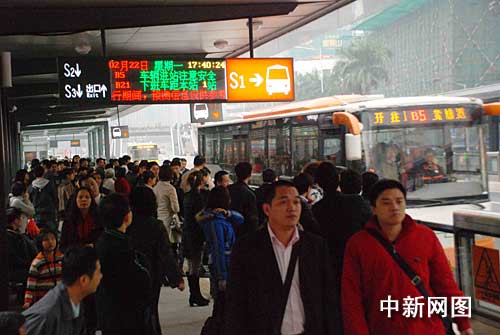 中新網(wǎng)廣州2月22日電 (吳敏平 謝平江 程景偉)廣州BRT(快速公交)自本月20日正式營運(yùn)以來一直問題不斷,今天BRT終于迎來節(jié)后第一個(gè)星期一的“大考”。今天下午,記者與乘客一同搭乘BRT,體驗(yàn)這個(gè)一直備受爭議的交通新工程能否順利通行。