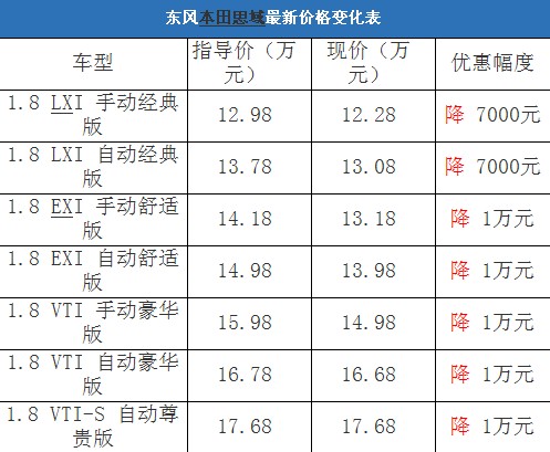近日,編輯從北京地區(qū)東風(fēng)本田4S經(jīng)銷商處了解到,思域有少量水晶紫、水晶銀色現(xiàn)車,部分車型預(yù)定需要等待1個(gè)月左右就可以提車。據(jù)經(jīng)銷商透露,除了經(jīng)典版優(yōu)惠7000元外,其他車型均可以優(yōu)惠1萬元現(xiàn)金,與去年末相比性價(jià)比有所提升。以下是思域最新價(jià)格變化表: