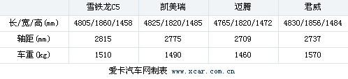 從車身尺寸來看,君威擁有最長的車身,但是C5的軸距最長。這樣就保證了C5擁有寬敞的車內空間。我認為C5的內部空間在前后間距和縱向間距都做的很寬敞,但頭部空間相對比較局促,尤其是后排。