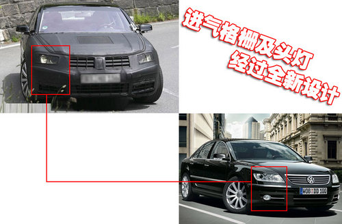 大眾新輝騰前臉采用上下分層的橫條形進氣格柵,照明燈組大量使用LED照明。從曝光的新輝騰路試諜照看,前臉應(yīng)該是其改變的重點,而在側(cè)面和尾部設(shè)計上變化將不會很明顯。