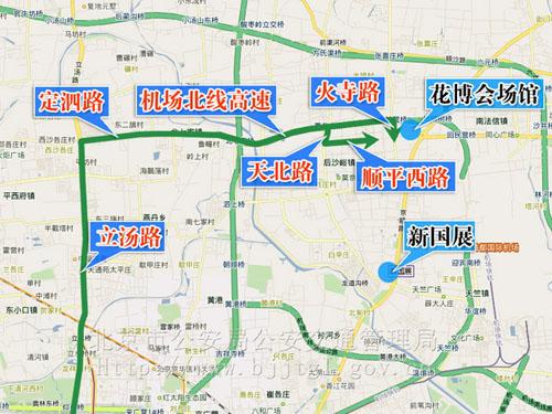 (二)由湯立路經(jīng)定泗路、機(jī)場北線高速路、火寺路出口、火寺路;或由機(jī)場北線高速路天北路出口經(jīng)天北路、順平西路至花博會(huì)場館自駕車停車場。