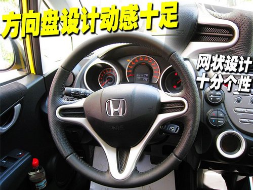 新飛度采用運(yùn)動(dòng)風(fēng)格突出的三幅運(yùn)動(dòng)方向盤,真皮包裹抓握時(shí)手感很好。喇叭按鍵比較靠近方向盤四周,駕駛者在按喇叭的時(shí)候無(wú)需要大幅移動(dòng)就能完成這個(gè)動(dòng)作。但遺憾的是新飛度的全系車型沒(méi)有采用時(shí)下流行的多功能方向盤。