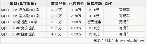 據(jù)奇瑞汽車4S店銷售人員介紹,目前奇瑞QQ30.8排量的三款車型只有舒適版車型無現(xiàn)車,基本型和啟航版車型分別有3000元和2000元的價(jià)格優(yōu)惠,1.0自動(dòng)檔車型也有2500元的現(xiàn)金優(yōu)惠。雖然降價(jià)幅度沒有前一陣子大,但還有額外的驚喜,到店購(gòu)車在原有現(xiàn)金優(yōu)惠的基礎(chǔ)上還可以贈(zèng)送價(jià)值1000元的裝飾。