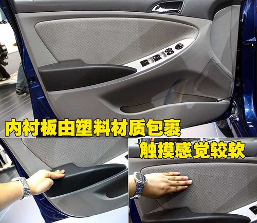 北京現(xiàn)代Verna4只外門拉手與車身同色,金屬感強烈,車門拉手附近做工細致,開啟的角度與所需的力度適中,沒有 “松散”的感覺,工藝質(zhì)量較好。