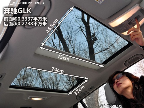 在首次見到GLK的雙天窗時,感覺還是比較喜歡的,但是相比后來的Q5,GLK的天窗就會顯得樸實(shí)有余而奢華不足了。說到底,橫在中間那道梁成為了破壞美感的最大障礙。仔細(xì)算下來,前后天窗的面積都不大,全加在一起的面積也不足奧迪Q5。注意哦,在此我們僅僅是評價天窗這一項,不含有其他方面的比較。