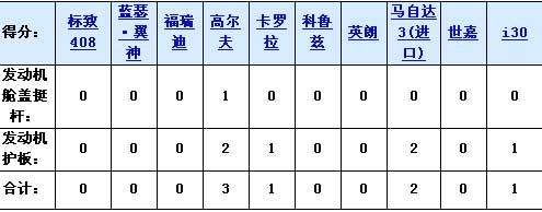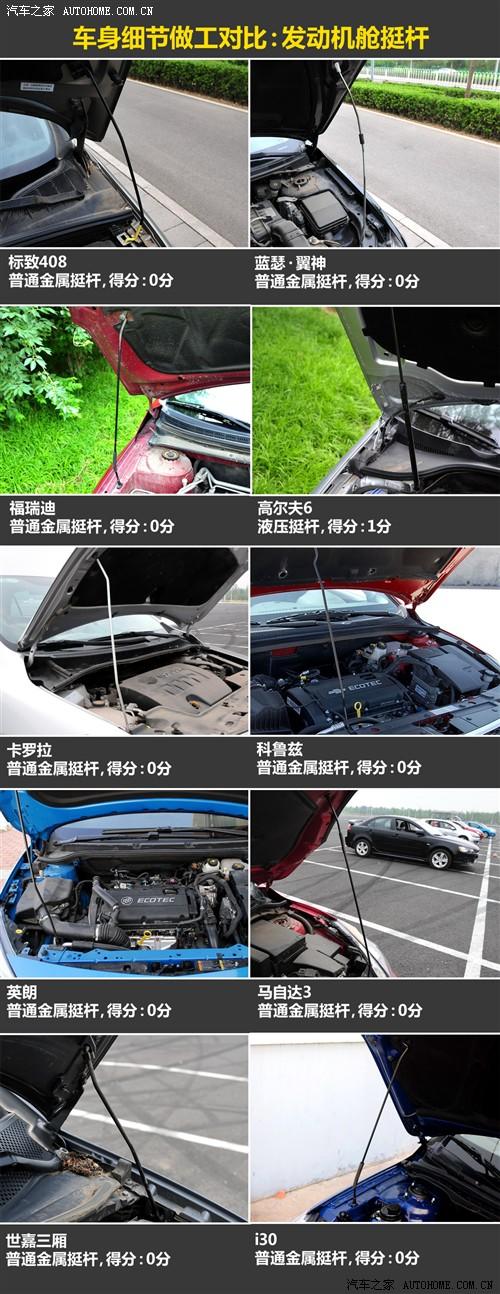 在這一環(huán)節(jié)的對比中,高爾夫6憑借著液壓的發(fā)動機艙蓋挺桿和大面積的發(fā)動機護板而保持領(lǐng)先,進口的馬自達3兩廂在發(fā)動機護板上也不錯,但其他一些車型其實則沒有大的區(qū)別。