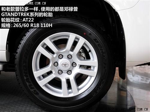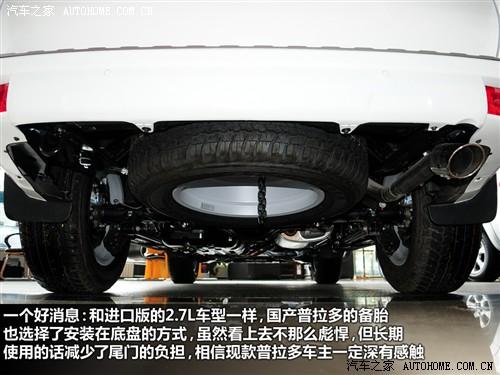 在輪胎和備胎方面,普拉多仍然堅(jiān)持使用鄧祿普的GRANDTREK系列輪胎,只不過花紋從老款的AT20升級到AT22。另外,新款普拉多有備胎外掛和底盤內(nèi)藏兩種版本,外掛顯得很彪悍,但長時間使用的話會引起尾門的變形,從而產(chǎn)生噪音和密封性的問題,這點(diǎn)老款普拉多車主經(jīng)常抱怨,當(dāng)然好處是車輛有足夠的位置設(shè)計(jì)副油箱,從而增加續(xù)航里程。進(jìn)口和國產(chǎn)的新款普拉多選擇了將備胎隱藏在底盤下面的版本。