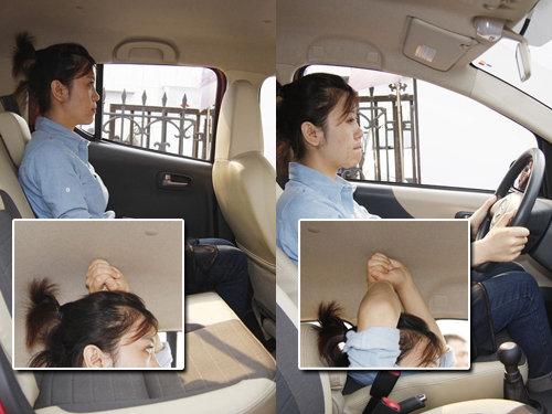 上圖的空間展示者身高不超過170cm,我們可以很清楚的看到,她在車內(nèi)的前排的座位上,奧拓給予她的空間還是很充足,而后排頭部空間方面,對于她的身高來說,只能算是夠用而已。