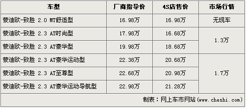 據(jù)福特北京經(jīng)銷店銷售人員介紹:目前店內(nèi)的蒙迪歐-致勝全系最高優(yōu)惠1.7萬元。蒙迪歐-致勝2.3L時尚版與豪華版優(yōu)惠1.3萬元,其他2.3l車型均有1.7萬元的現(xiàn)金優(yōu)惠。全系入門級的2.0L手動舒適版目前店內(nèi)沒有現(xiàn)車,欲購買的消費者需要預(yù)訂。