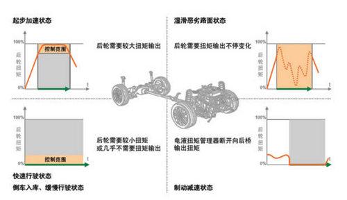只要仔細(xì)看看廠商網(wǎng)站上四驅(qū)系統(tǒng)的扭矩輸出圖就不難看出了:在大多數(shù)高速行駛,或是倒車入庫、緩慢行駛的時(shí)候,途觀為了油耗考慮,后輪扭矩分配為零,就是作為一款前驅(qū)車而存在的,只有當(dāng)起步加速時(shí),或是前輪打滑需要后輪驅(qū)動(dòng)脫困時(shí),才會(huì)分配扭矩給后輪,以獲得更好的加速性能或是道路通過性。這明明就是一套適時(shí)四驅(qū)結(jié)構(gòu),卻要扯上虎皮裝成“智能全時(shí)”!