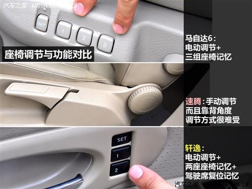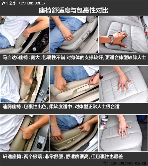 在這三款車中,中型車的馬自達(dá)6具有最寬大的座椅和三組座椅記憶,只是他的天窗面積實(shí)在有點(diǎn)。凰衮v的的配置影響了便利性,但卻是三款車中唯一有后排出風(fēng)口的;軒逸的座椅就像家里的沙發(fā)一些,而且在開(kāi)門(mén)的瞬間還可以自動(dòng)后撤來(lái)方便上車,但幾乎沒(méi)什么包裹性可言,不利于高速行駛。
