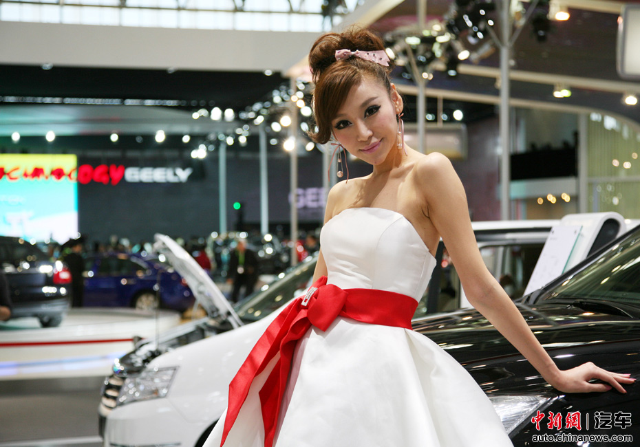 北京車展群芳競(jìng)艷 靚模一襲白裙秀香肩