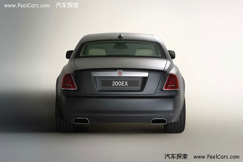 從外觀上看,200EX的風格與幻影十分相似。豎立在引擎蓋上的歡樂女神提示著我們這是一輛真正的勞斯萊斯。幾乎筆直的水箱格柵以及厚重的車尾都粗造出莊嚴的氣勢,對開式車門可以讓貴族車主更方便的上車。
