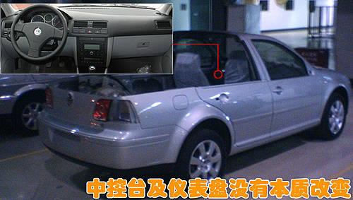 寶來皮卡與寶來經(jīng)典版車型的不同之處,主要體現(xiàn)在第二排座椅和后備箱與貨箱的差異。而在內(nèi)飾方面,寶來皮卡依然裝配寶來經(jīng)典版車型的中控臺。寶來皮卡版車型可能是一汽大眾廠區(qū)內(nèi)部用車,但也不排除批量生產(chǎn)的可能。