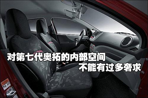 作為一款微型轎車,第七代奧拓不管如何升級換代,內部空間仍未有太多的改善。前風擋過大的傾斜使前排頭部空間比較狹小,身材較為高大的消費者坐在前排可能會有壓迫感。而筒式的座椅與頭枕呈一體式設計,對身材較為高大的乘員包裹性也不能有過多奢求。